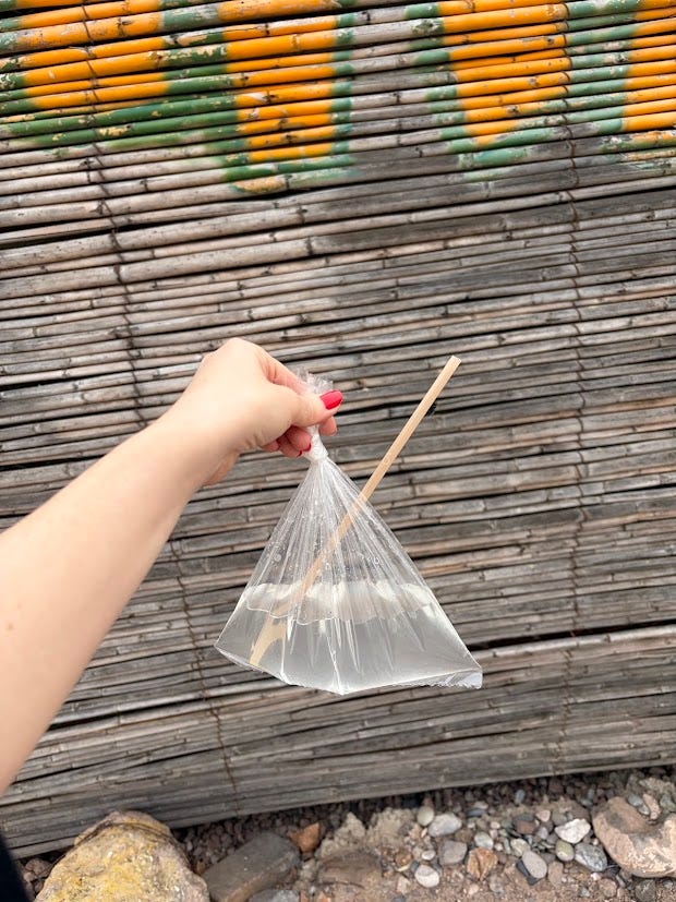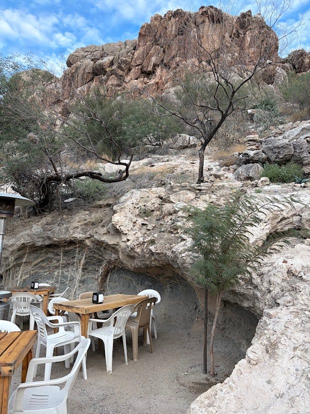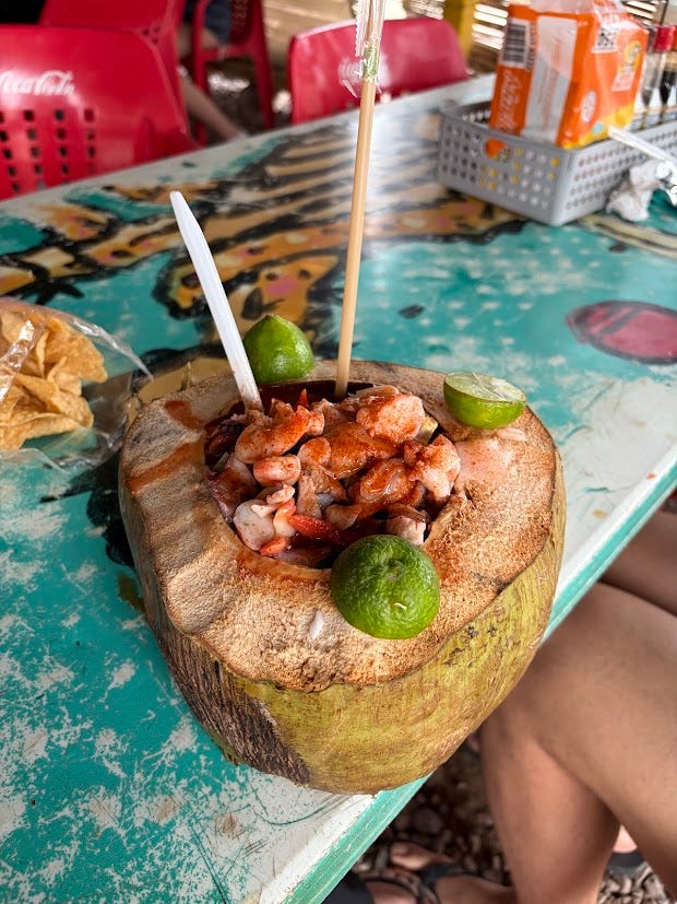 On the way back to Hermosillo, we stopped at this roadside shack that does ceviche inside of coconuts. The most incredible thing I ate on this trip. They even put the coconut water in a to-go baggie.