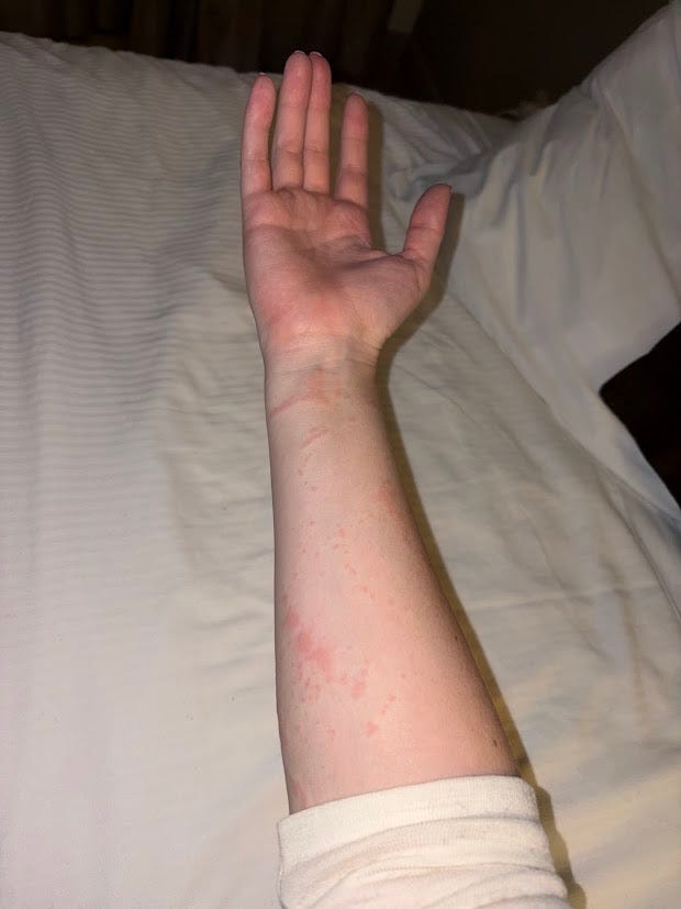 However, I did try to snorkel for approximately two minutes before I was stung all over my arm by some microscopic creature that comes out when the water is cold. Turned into a bunch of tiny blisters by nighttime. Ouch!!