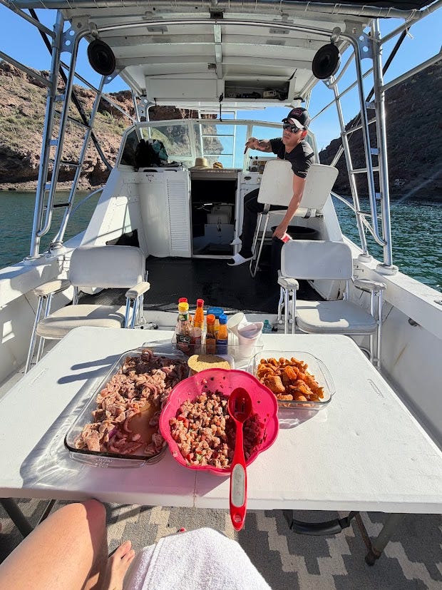 Went on an afternoon boat ride. Our captain caught like 7 yellowfin that morning. Brought Wuthering Heights as my boat read, which was a really odd and not the vibe. Our fearless captain prepared some of the mornings catch into ceviche two ways, insane. Beautiful day.